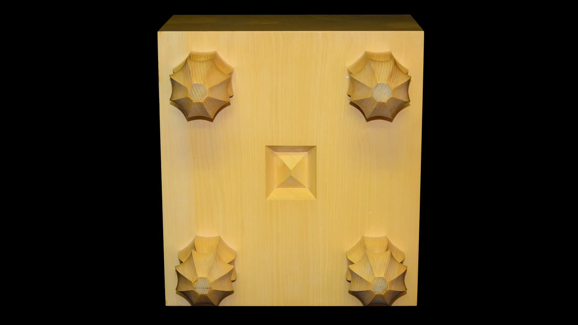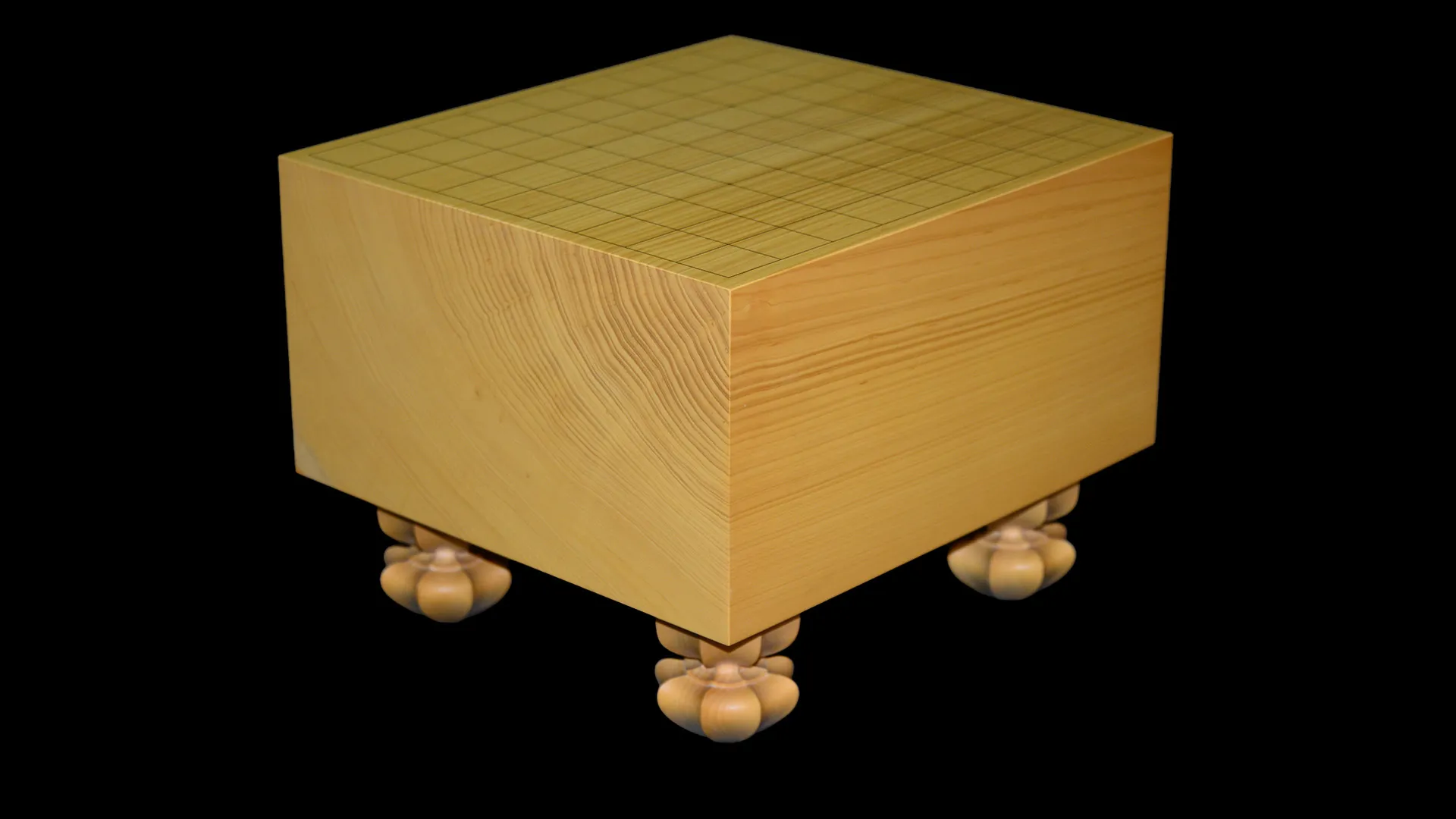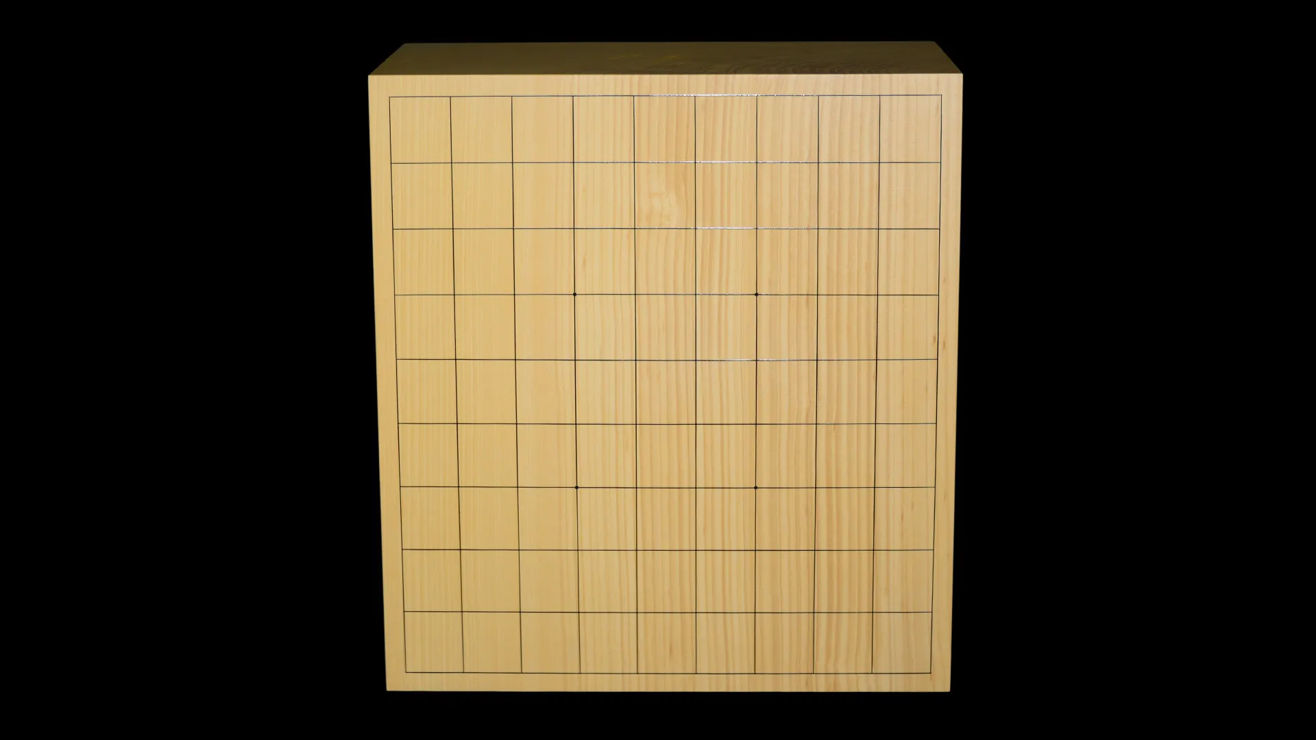 This board is made from a single plank of kaya grown in Kyushu. Kaya has long been used for shogi and Go boards, valued for its elasticity and the clear tone it produces when pieces are placed. The playing surface is straight-grained and free of knots.