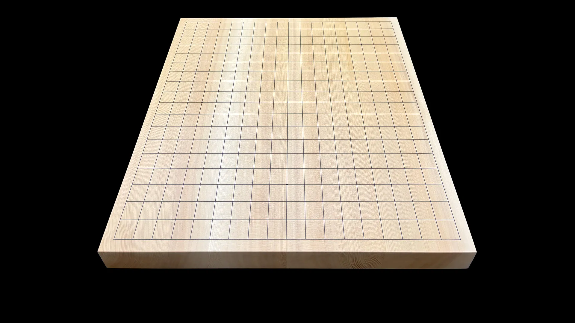柾目取りで製作しています。柾目とは、丸太の中心に向かって切り出した断面で、縦に真っ直ぐ通った木目が特徴です。整然とした見た目と、狂いが出にくい安定性が柾目の特徴です。木目の細かさと柾目の直線が合わさり、盤面に静かな緊張感があります。