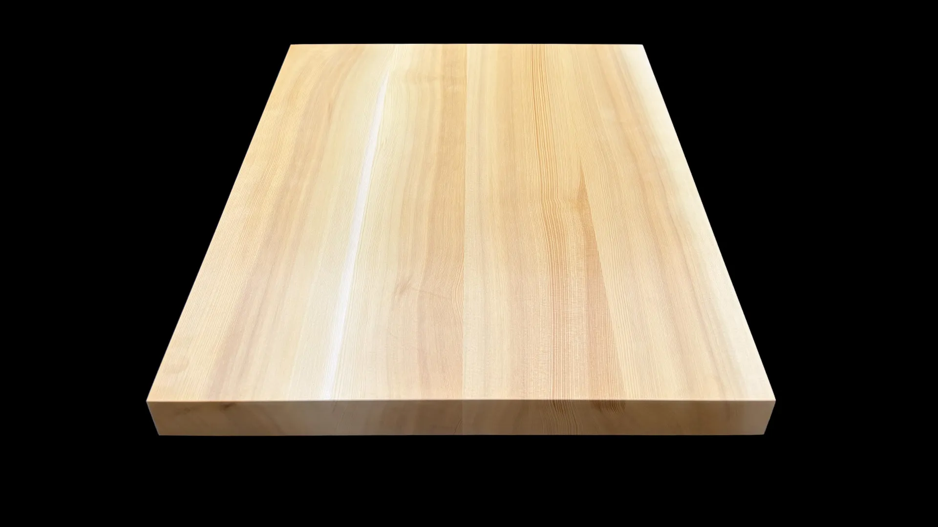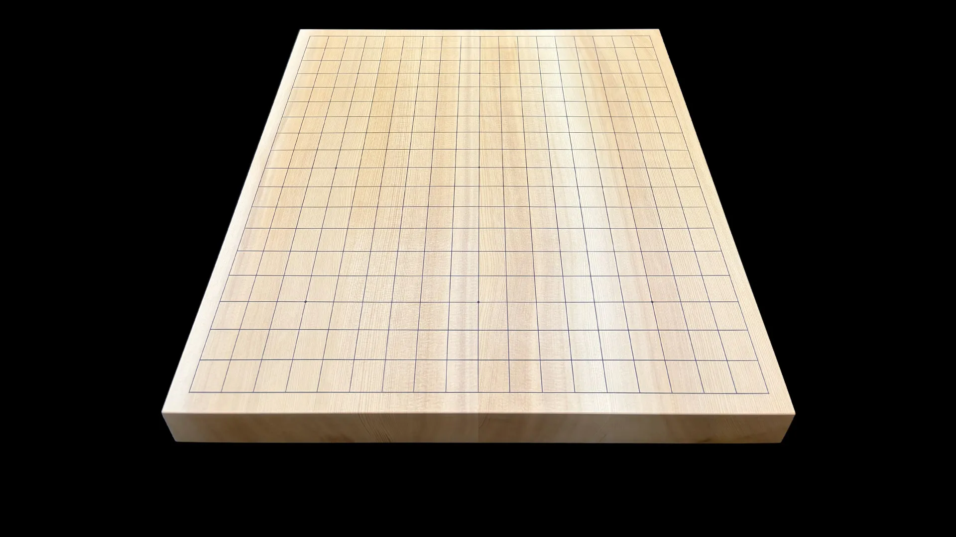 細かい木目と柾目の直線が揃い、節のない盤面。薄盤でありながら材の質がしっかりしている一枚です。置き場所や収納のしやすさを重視する方にも、検討していただける厚みです。