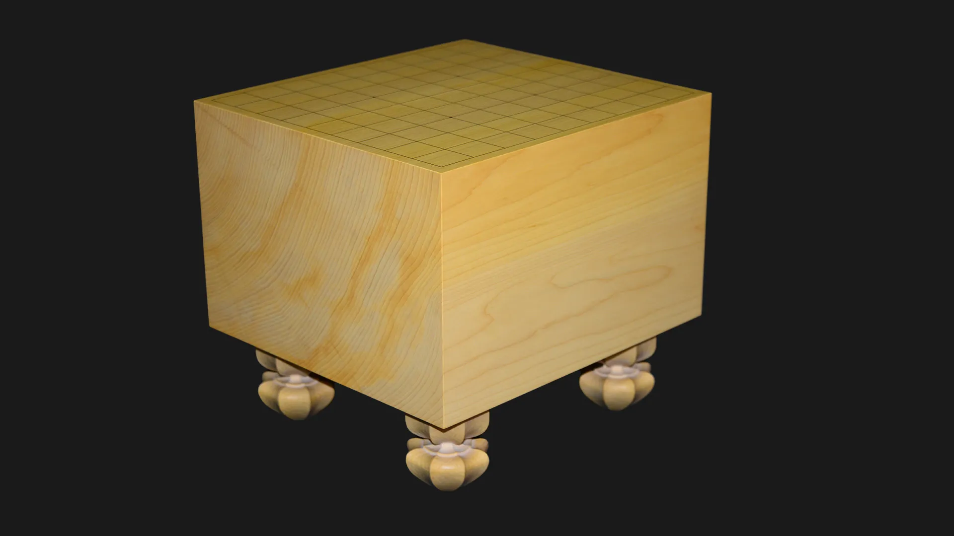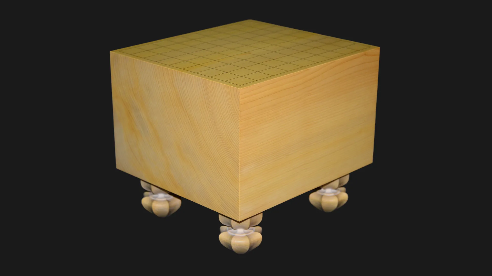 九州で育った榧の一枚板です。木目は細かくありませんが、均一に走っています。熊須が「木目は荒いのですが均一に木目が走っている」と評した通りで、整然とした力強さがこの盤の個性です。 榧は将棋盤・碁盤の素材として古くから選ばれてきた木です。適度な弾力と独特の打ち音、そして使い込むほどに深まる色と艶が特徴です。