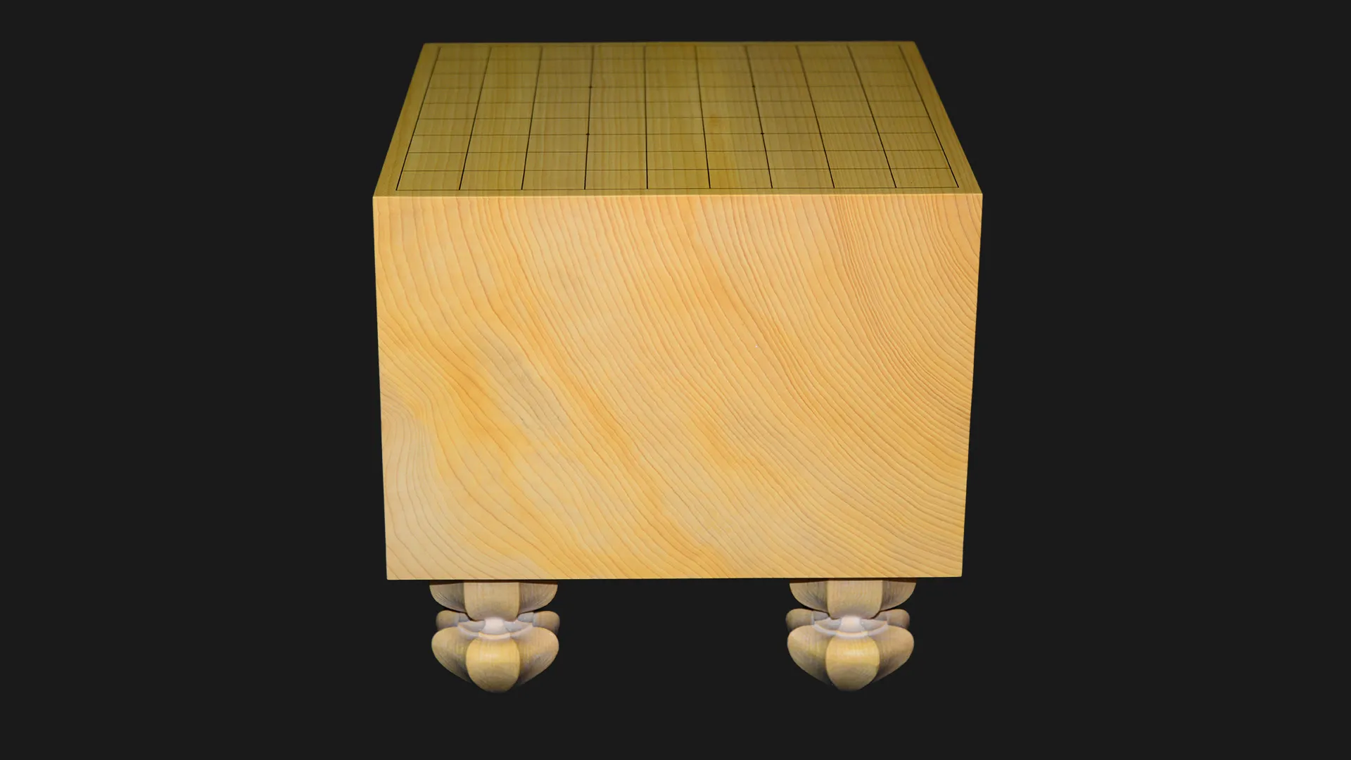節はありません。盤面・側面ともに、難のない材です。黄系の色味は、使い込むほどに榧特有の飴色へと変化していきます。木目の幅が広い分、経年後の表情も豊かになります。