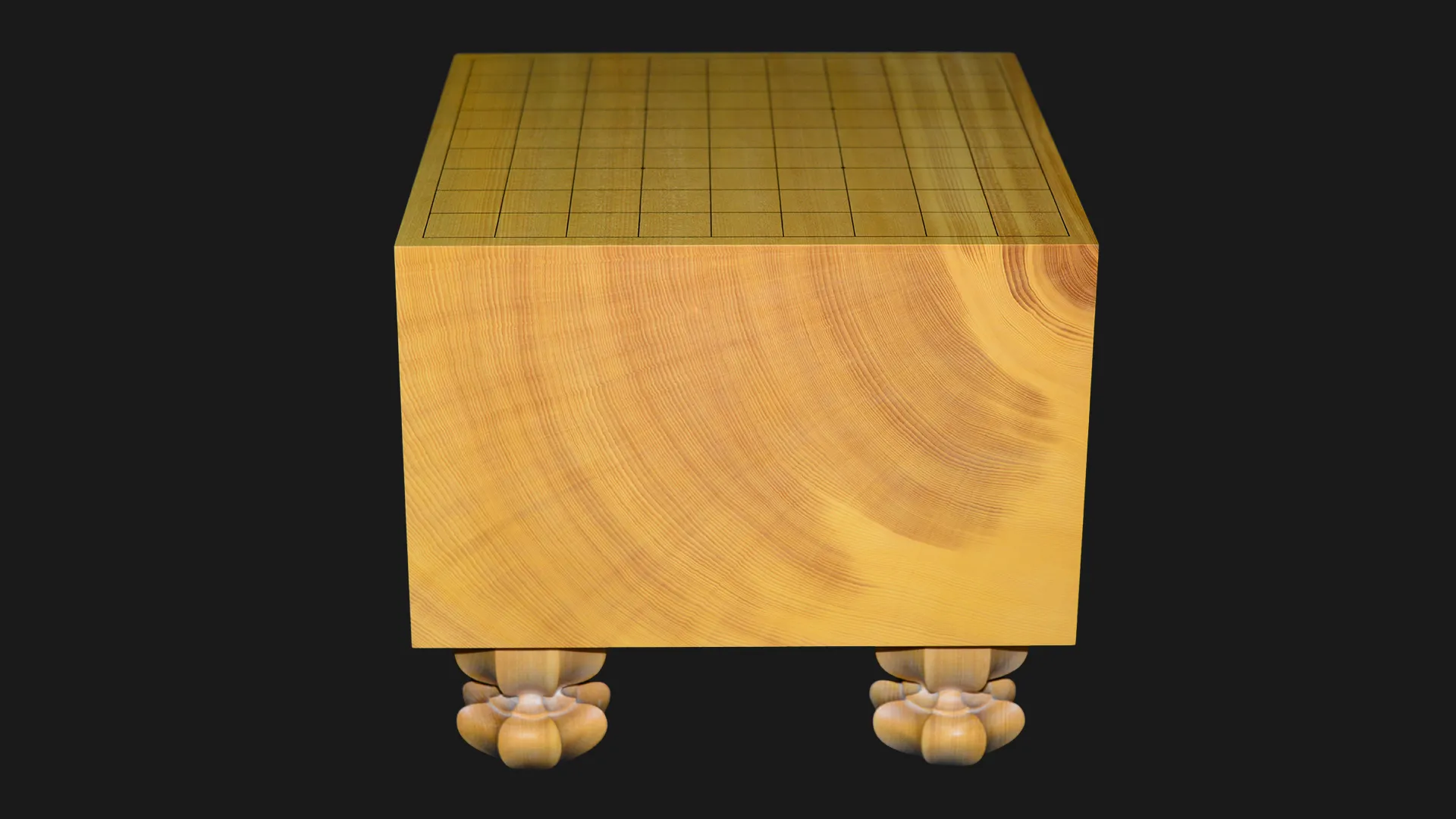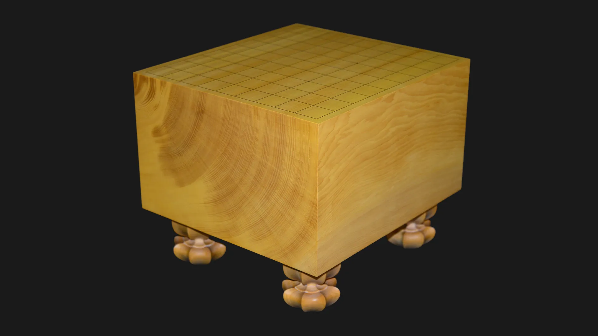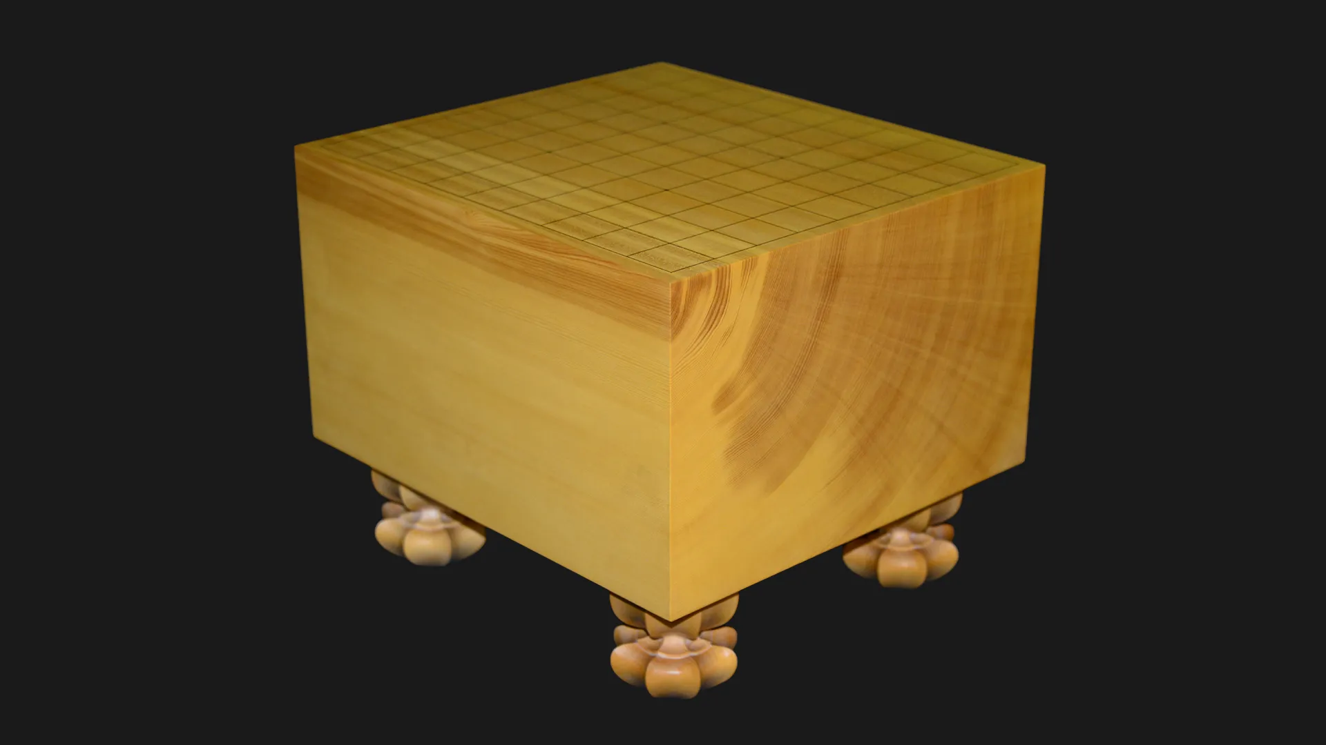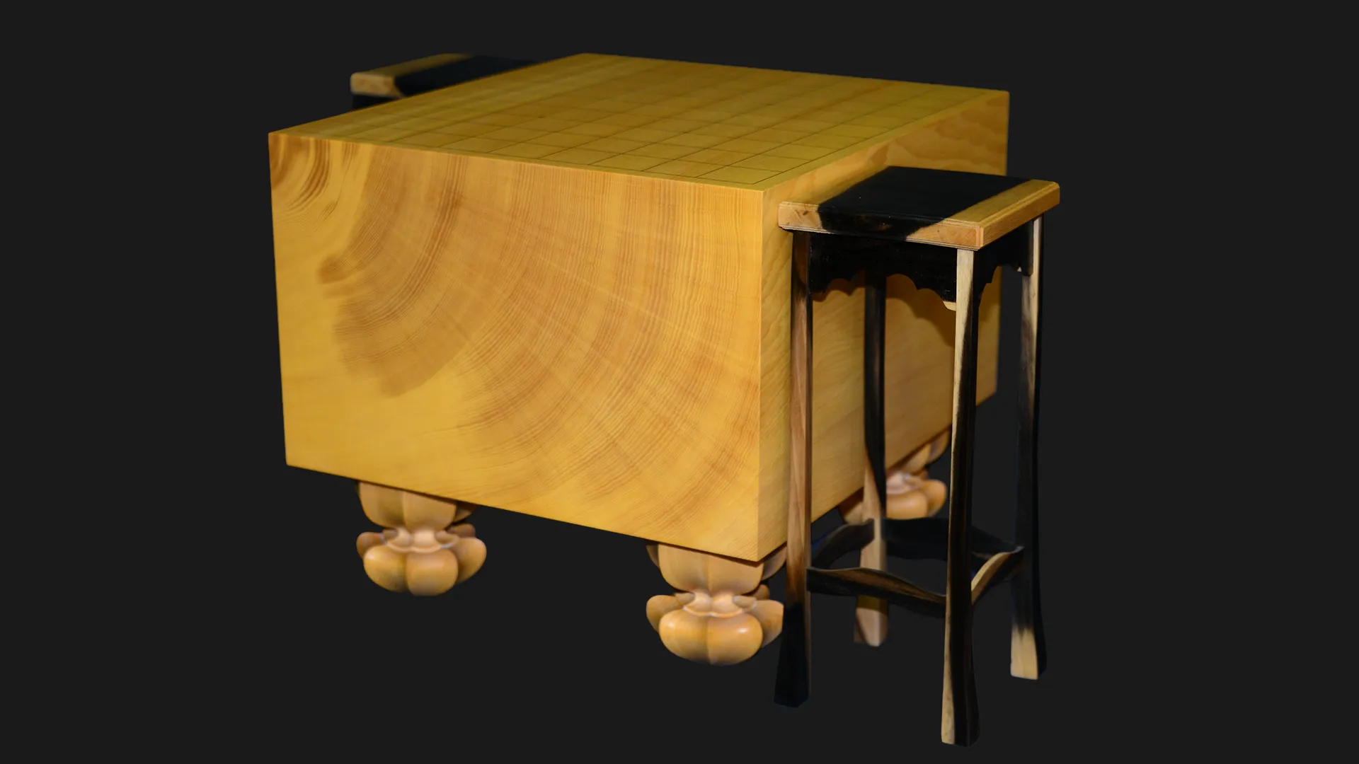 盆の表面にクチナシの実をかたどった脚を、職人が一本一本手彫りで仕上げています。 将棋は対局する二人の世界です。「勝負に他人は口を出してはいけない」という意味が、この形に込められています。クチナシ——口無し。盤に向かうときの静けさを、脚の形そのものが伝えています。 この手彫りを続けている盤師は、全国でもほとんどいません。